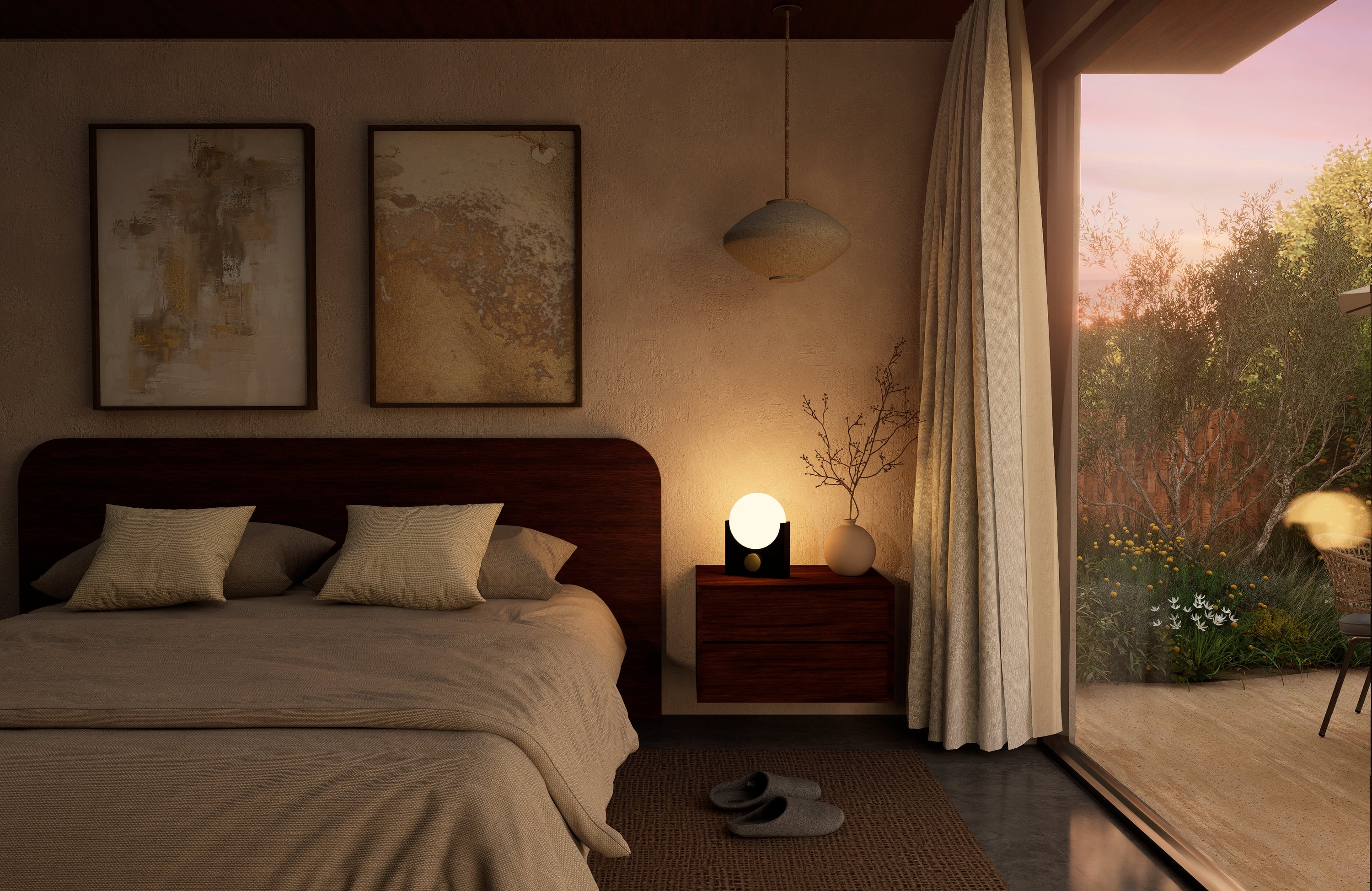 In 2022, Louis and Greg met at a coffee shop in San Francisco, where they discussed ideas for a bedside lamp with automated circadian lighting and simple controls. The duo started exploring concepts, such as the one above.
