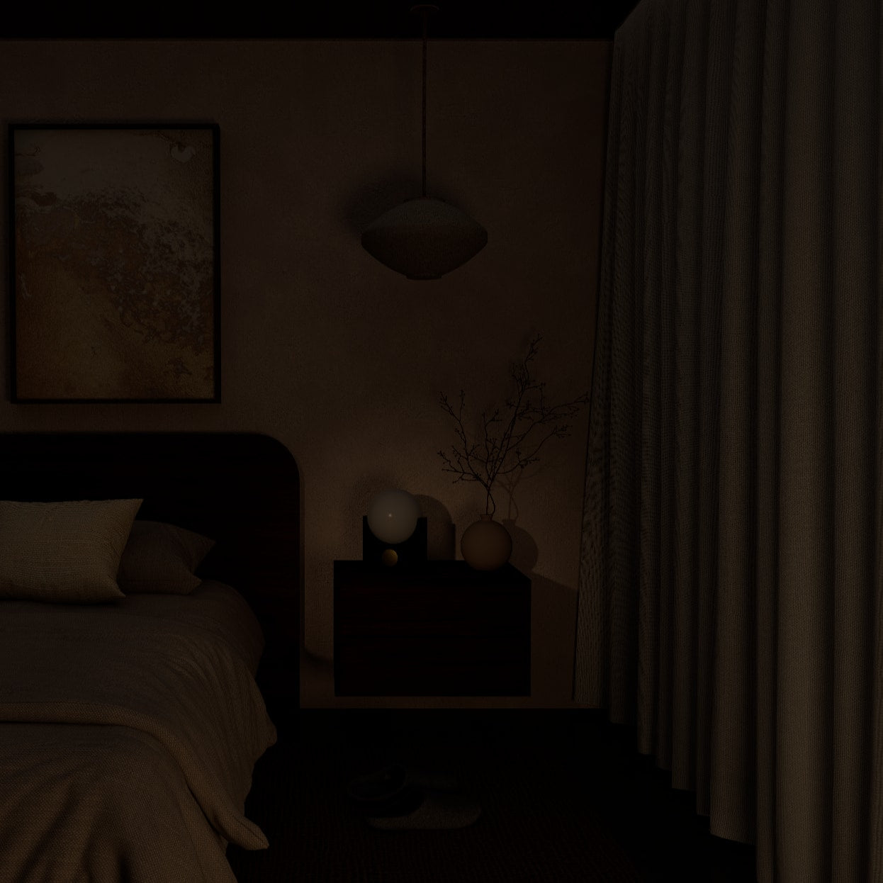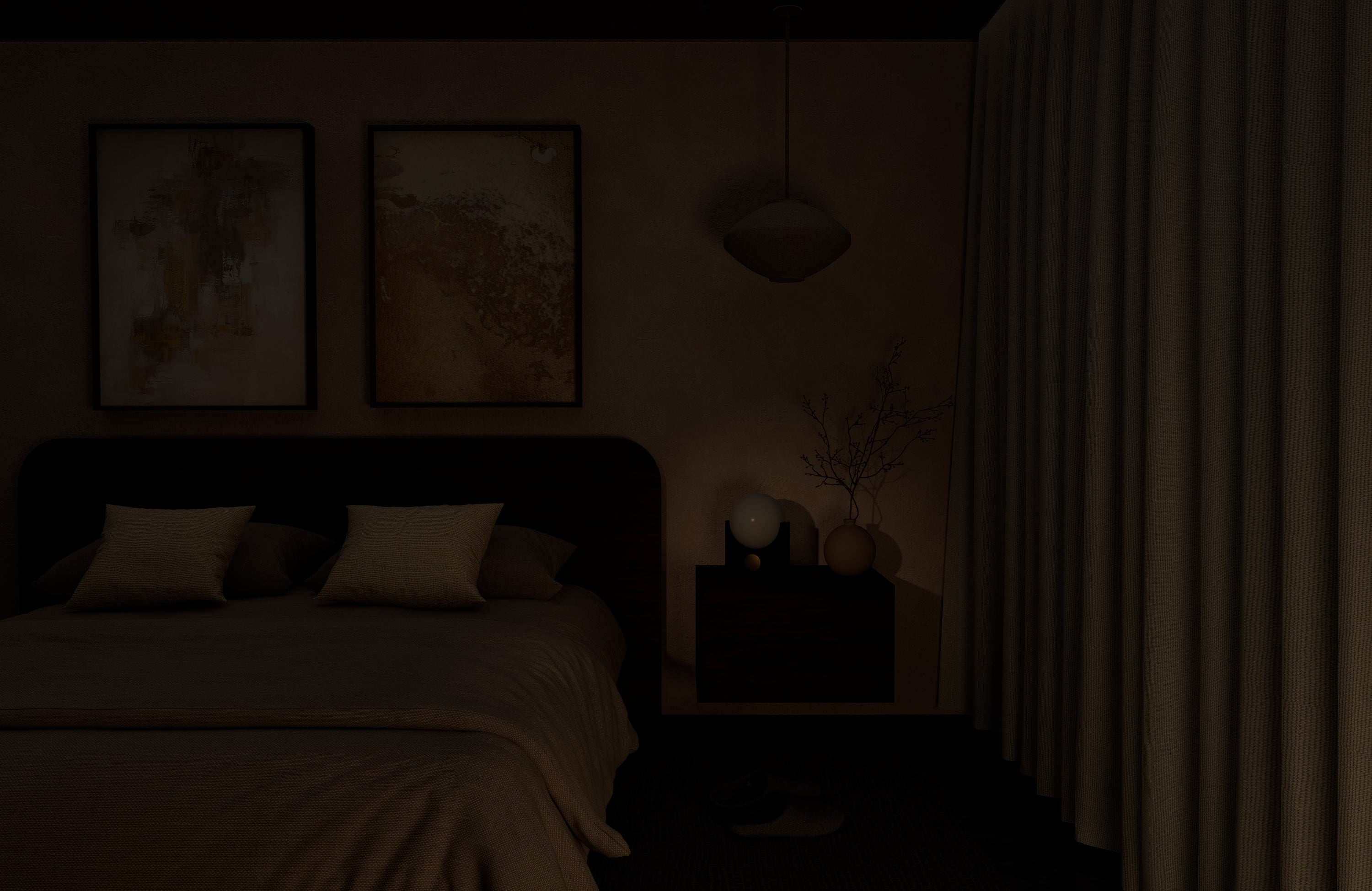 After sunset, Atmos shifts to warm amber-white tones that help your body naturally produce melatonin and ease into relaxation.
